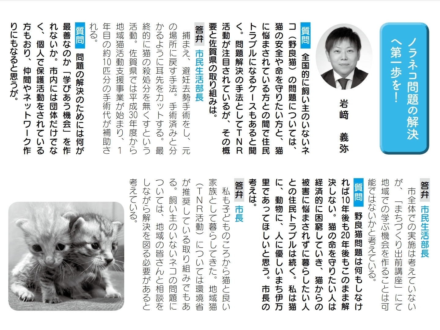 私は一般質問だけでなく、本会議、委員会、全員協議会等の重要会議について議事録や映像の公開が必要ではないかと感じています。 見える化について、議会全体としての動きが難しい場合は、個人であっても積極的に情報発信していくことを約束します。